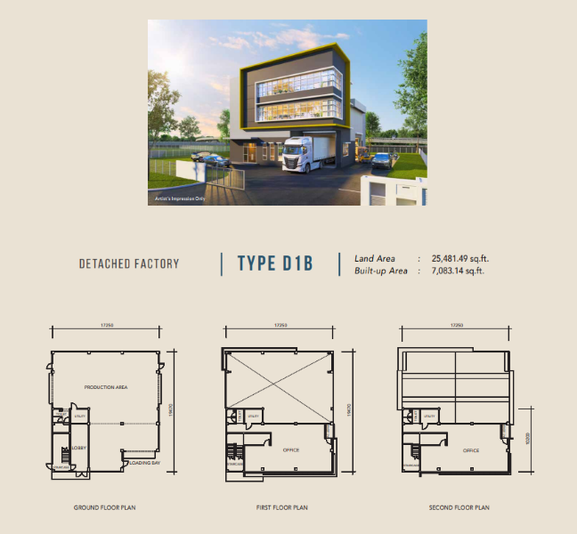 A detached factory is a type of industrial building that stands independently on its own plot of land without sharing walls or structures with other units.
